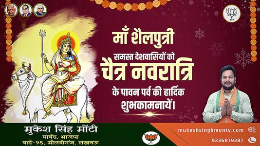 मुकेश सिंह मोंटी- नवरात्रि के मंगल पर्व पर   आप सभी के जीवन में समृद्धि का संचार हो-या देवी सर्वभूते