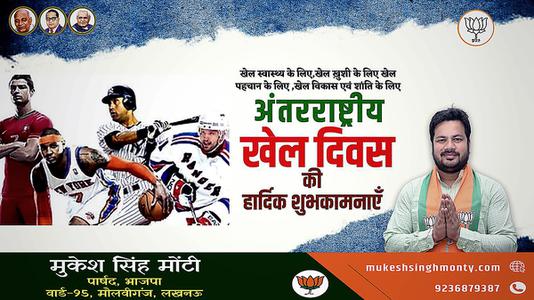 मुकेश सिंह मोंटी-राष्ट्रीय खेल दिवस की आप सभी देशवासियों को हार्दिक शुभकामनाएं