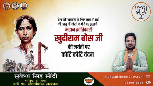 मुकेश सिंह मोंटी- श्री खुदीराम बोस जी की जयंती पर शत-शत नमन