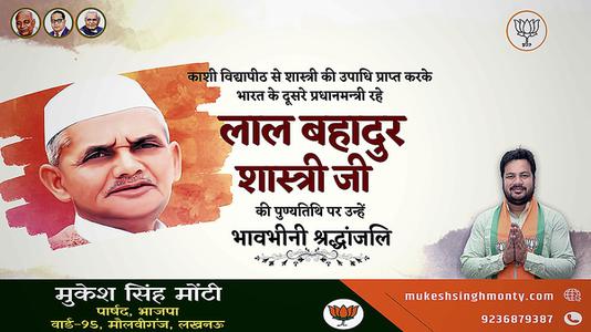 मुकेश सिंह मोंटी-लाल बहादुर शास्त्री जी   की पुण्यतिथि पर विनम्र श्रद्धांजलि