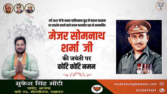 मुकेश सिंह मोंटी-मेजर सोमनाथ शर्मा जी   की जयंती पर शत शत नमन