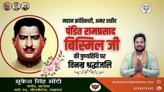 मुकेश सिंह मोंटी-राम प्रसाद बिस्मिल जी की पुण्यतिथि पर विनम्र श्रद्धांजलि