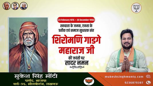 मुकेश सिंह मोंटी-शिरोमणि गाडगे महाराज जी की जयंती पर शत शत नमन