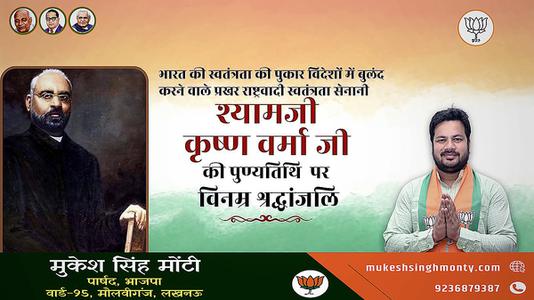 मुकेश सिंह मोंटी-श्यामजी कृष्ण वर्मा जी की   पुण्यतिथि पर विनम्र श्रद्धांजलि