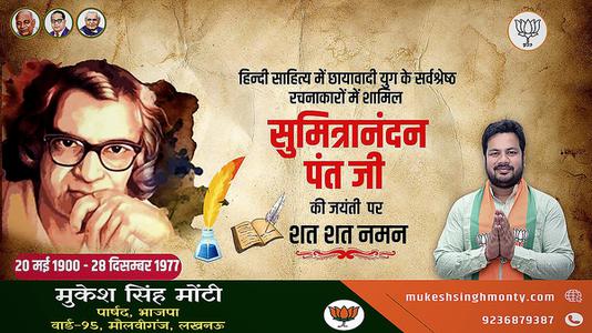मुकेश सिंह मोंटी-सुमित्रानंदन पंत जी	  की पुण्यतिथि पर विनम्र श्रद्धांजलि