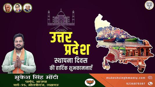 24 जनवरी 1950 को उत्तर प्रदेश को अस्तित्व मिला था, जब भारत के गवर्नर जनरल ने यूनाइटेड प्राविंसेज (आल्टरेशन ऑफ नेम) ऑर्डर 1950 पारित किया था। तब से लेकर आज तक हम 24 जनवरी को उत्तर प्रदेश का स्थापना दिवस मनाते हैं। 24 जनवरी 1950 से पहले यह राज्य यूनाइटेड प्रॉविंस के नाम से पहचाना जाता था। यह राज्य गंगा-जमुनी तहजीब के लिए जाना जाता है. साथ ही गंगा, यमुना और सरस्वती के संगम के लिए जाना जाता है, और खेती भी खुब होती है।